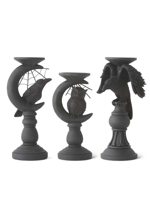Set of 2 Resin LED Skull on Books with Crow Figurines